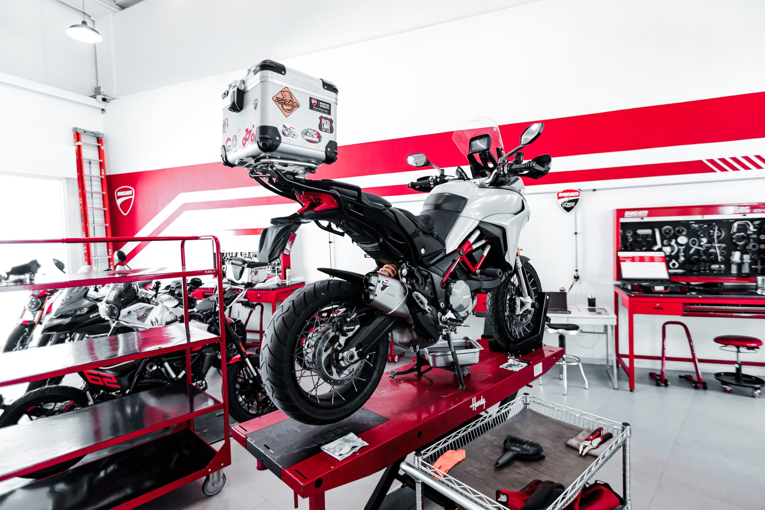 En Ducati Puebla, valoramos enormemente la satisfacción de nuestros clientes y el servicio post-venta. Es por ello que nuestro equipo de mecánicos se asegurará de que tu moto esté siempre en las mejores condiciones, además de ofrecerte la posibilidad de personalizarla para que disfrutes de tu Ducati al máximo. ¡Déjala en manos de los expertos!